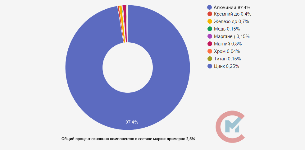 • Алюминий (Al) от 96,1%