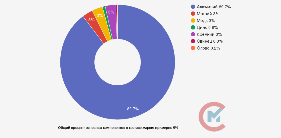 Основой AB91 является металлический сплав алюминия, содержание которого должно быть не менее 89,7%. Допустимое количество примесей определяется таблицей химического состава ГОСТ 295-98.