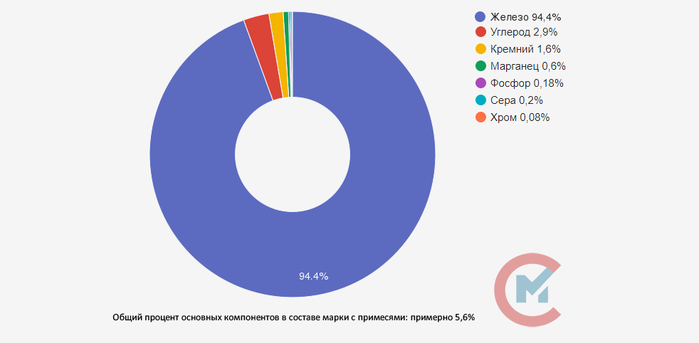 В отличие от серого чугуна, в составе которого находится пластинчатый графит, в ковком чугуне графит полностью или частично представлен в виде хлопьев. Благодаря этому прочностные характеристики ковкого чугуна гораздо выше. Помимо углерода в виде графита, в данном сплаве также содержатся – кремний, марганец, сера, фосфор, а также хром. Также возможны дополнительные обработки покрытия.