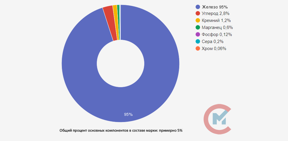 Основа чугуна – железо. Углерод и кремний привносят в сплав литейные качества, обрабатываемость и мягкость. Такие элементы, как марганец, фосфор, сера и хром также привносят и улучшают характеристики КЧ35-10. Их общее содержание должно быть не более 1%.
