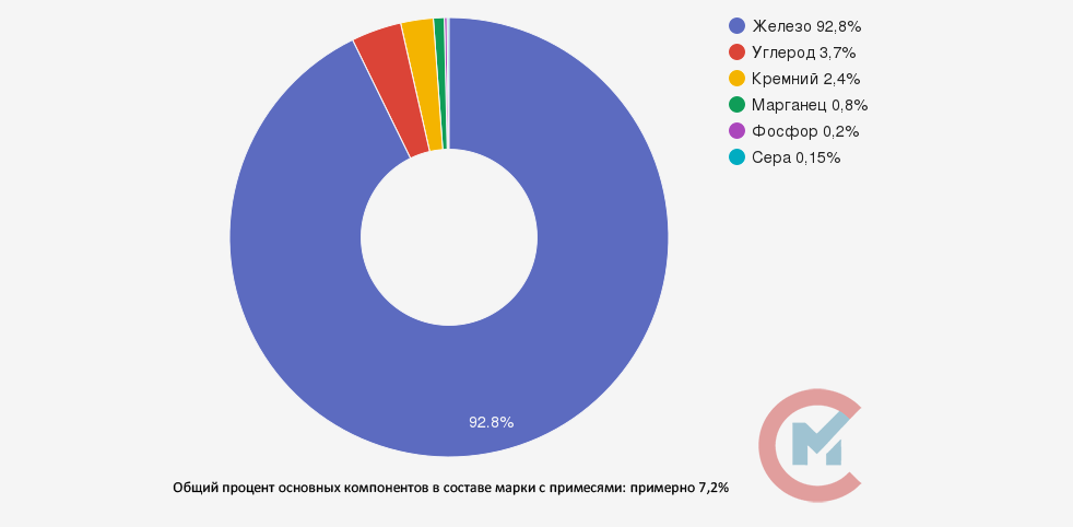 Добавление пластинчатого графита повышает показатель износостойкости сплава, предел выносливости и чувствительность к надрезам, но понижает прочностные качества, изделие становится более хрупким. Чугун СЧ15 помимо железа, включает в себя такие элементы, как кремний, марганец, железо, сера, фосфор.