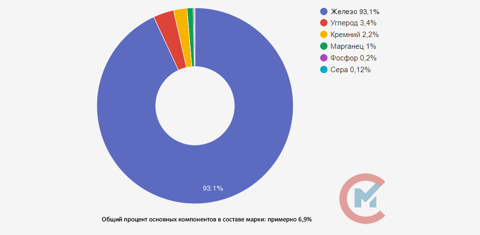 Данный сплав отличается меньшим содержанием графита в своем составе. Основным элементом является железо, дополнительными – кремний, а также марганец, фосфор и сера, процентное содержание которых, согласно ГОСТ 1412-85, не более 1%. Допускается низкое легирование никелем, хромом, медью и др.