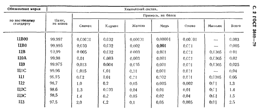 Общая доля примесей для марки Ц3, согласно ГОСТ 3640-79 и ГОСТ 3640-94 не должна превышать 2,5%.