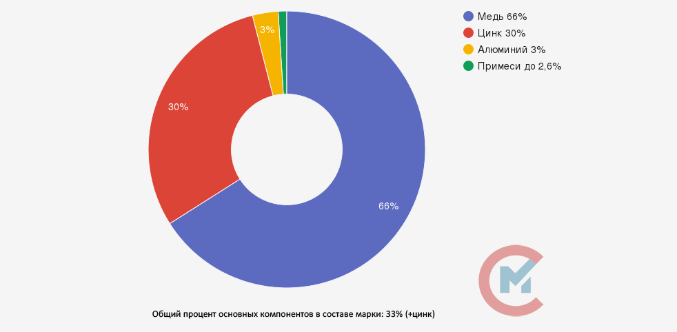 Расшифровывается латунный сплав ЛЦ30А3 как металл, в котором сокращение «Л» обозначает латунь, в составе которой медь, «Ц30» цинк со среднепроцентным содержанием 30% и «А» алюминий 3%.