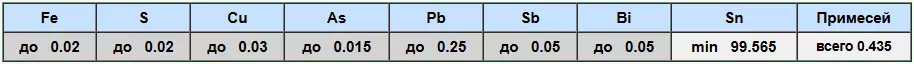 Олово марки О2, известное также, как олово высокой степени чистоты. Обозначается символом Sn (от латинского "stannum"). Содержание данного металла в марке О2 составляет не менее 99,5%. Так же присутствуют следовые количества других веществ, таких как: свинец (Pb), медь (Cu) и железо (Fe).
